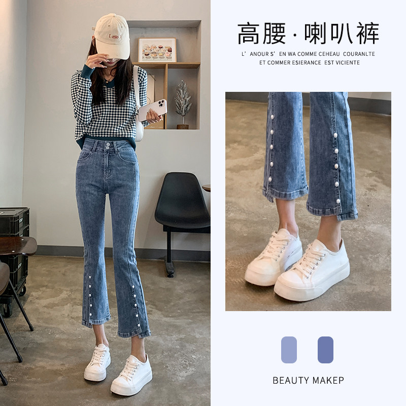 阔腿牛仔裤女微喇高腰显痩2023年春秋新款修身力加长喇叭裤加绒